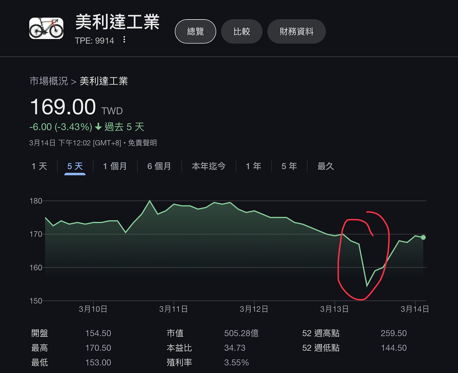 最近很多公司就出現這件事,而且都還是大公司。包含華碩(2357)、保瑞(6472)、台達電(2308),還有昨天(3/13)才公佈第四季財報的美利達(9914)。