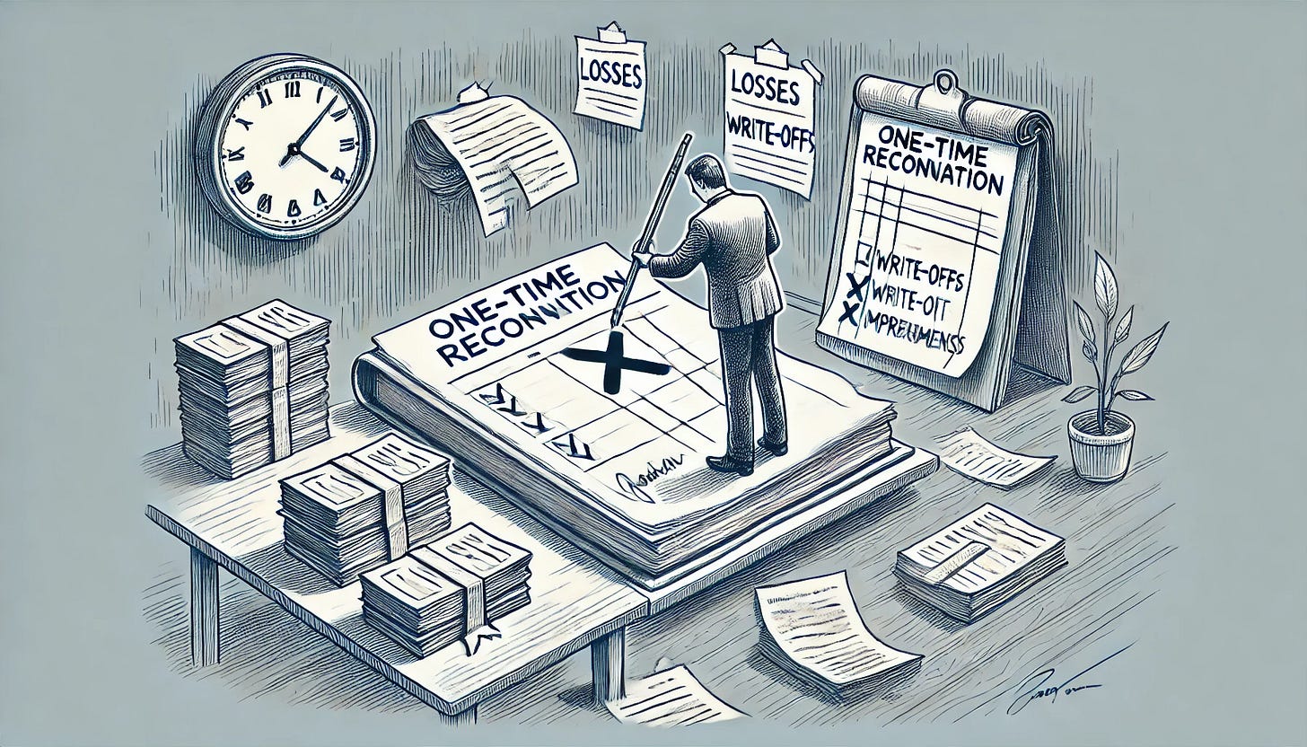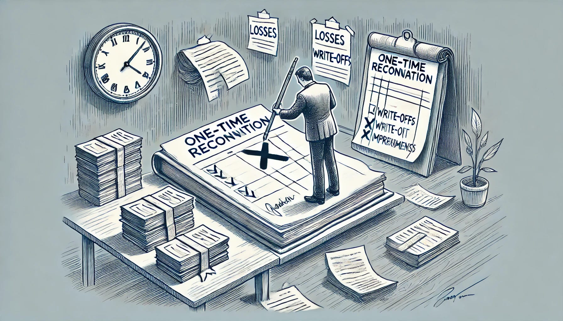 這種出奇不意的一次認列損失,經常讓投資人大吃一驚,也無從預期。在一家全年風平浪靜的公司身上發生,藉由一次性在第四季「清理門戶」,好處是讓未來財務表現看起來好些。