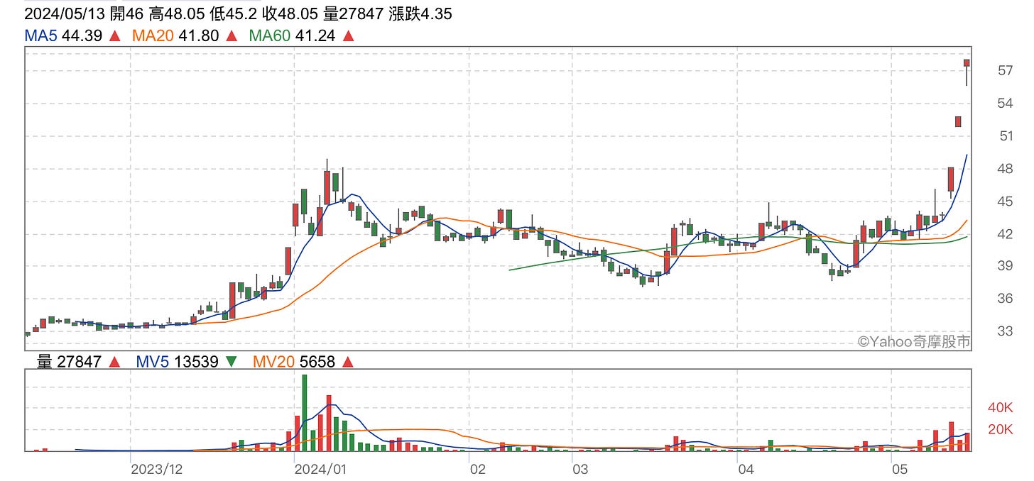但大家要注意啊,以我這種智商都想得到6月初的Computex的大方向放在那裡,很多人也多半也想得到,如果提前漲的過兇,我們還是要注意「消費性品牌要有活動題材才可以,不管是法說、新品還是大展」。否則,要持續漲有難度。